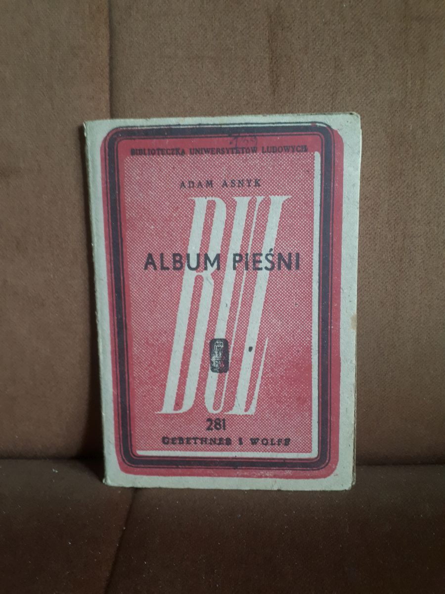 Pieśni Adama Asnyka zebrane i zredagowane przez dr Annę Chorowiczową. Wydanie przedwojenne.