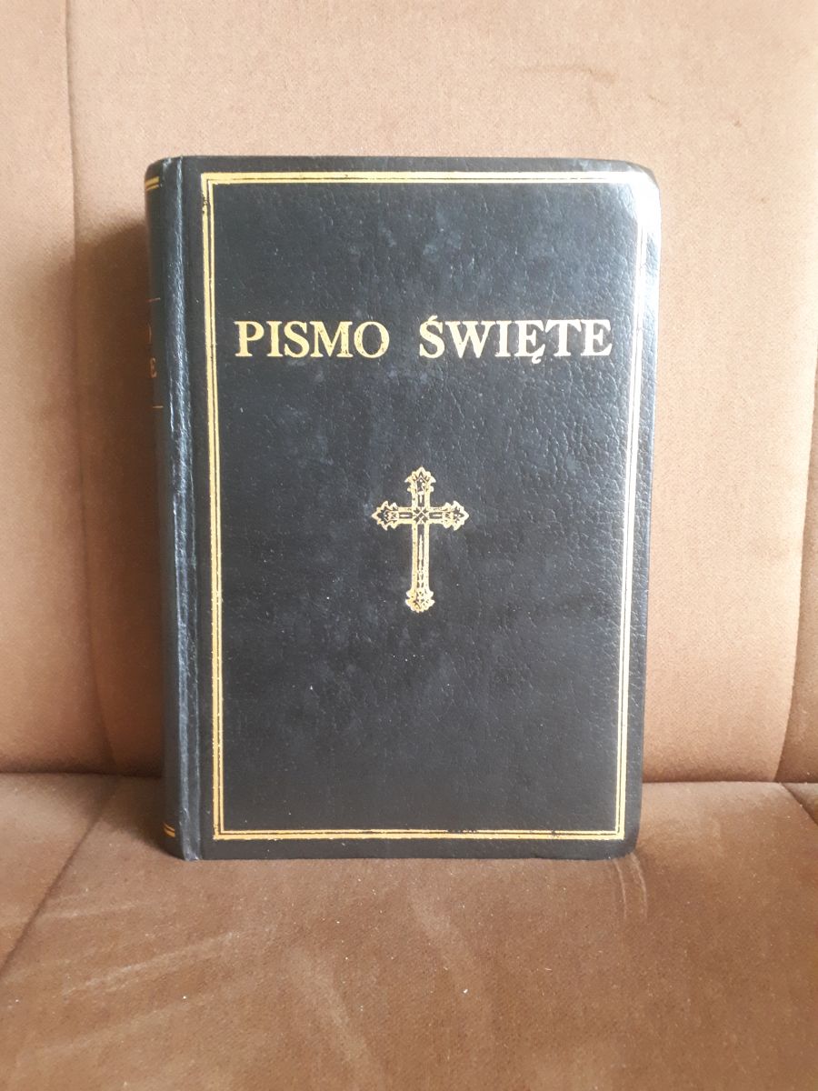 Wymiary: 24,7 cm x 17,6 cm. Oprawa twarda, stan db. Lekkie przygięcia i przybrudzenia na okładce. Lekkie przybrudzenia zewn. części kartek. Zgięcia i przygięcia oraz lekkie przybrudzenia wyklejki i niektórych stron. Wyd. Brytyjskie i Zagraniczne Towarzystwo Biblijne, 1986. 1352 strony.