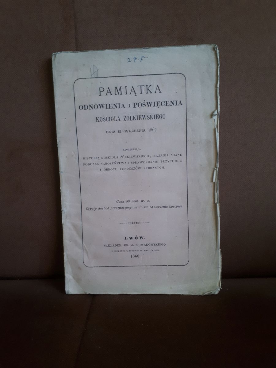 W książce zawarto historię Kościoła Żółkiewskiego, kazania wygłaszane podczas nabożeństwa i sprawozdanie przychodu i obrotu funduszów zebranych.