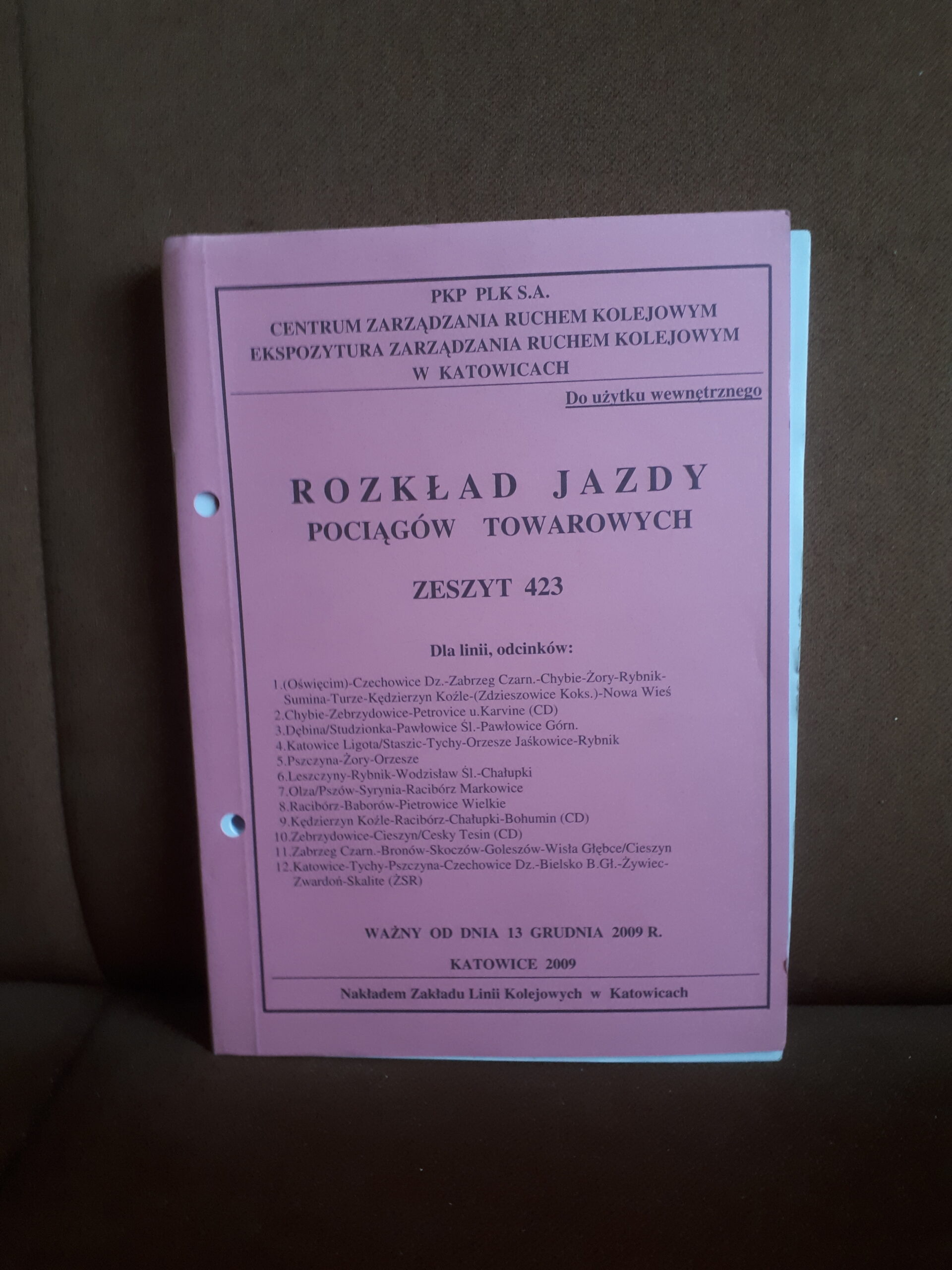 Rozkład Jazdy Pociągów Towarowych – zeszyt 423. Ważny od dnia 13 grudnia 2009 roku.