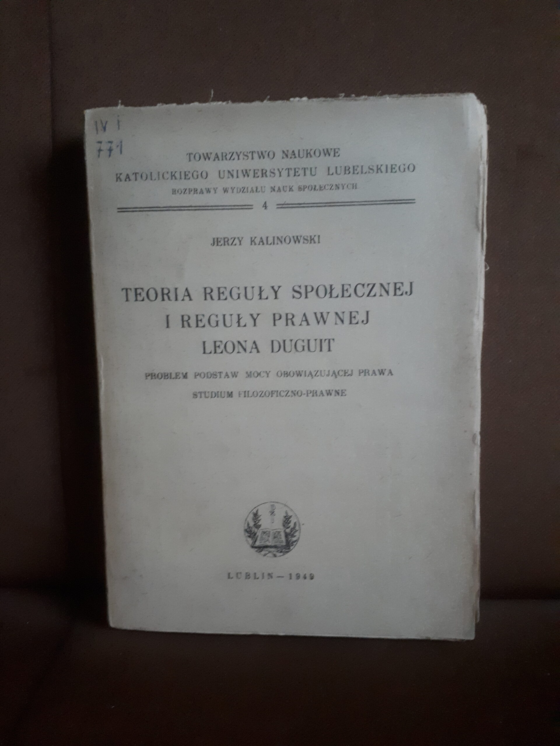 Wymiary: 21,8 cm x 15,8 cm. Oprawa miękka, stan bdb-. Lekkie przygięcia, przytarcia i śladowe przybrudzneia okłakdi. Wpis na okładce. Strony fabrycznie nierówno przycięte. Papier pożółkły. Śladowe przybrudzenia zewn. części kartek. Pieczątka i wpisy na kilku stronach. Śladowe przybrudzenia i przygięcia kilku stron. Wyd. Towarzystwo Naukowe KUL, Lublin 1949. 183 strony.